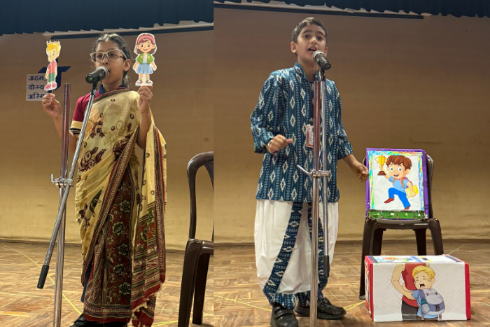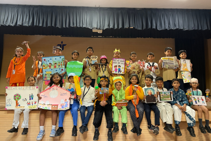 कक्षा तीसरी के छात्रों के बीच 23 सितंबर 2025, को विद्यालय में अंतरकक्षा ‘बुनो कहानी’ प्रतियोगिता का सफल आयोजन किया गया। इस प्रतियोगिता का उद्देश्य विद्यार्थियों में आत्मविश्वास, तार्किक चिंतन, सृजनात्मकता और भाषा–ज्ञान को विकसित करने के साथ-साथ उन्हें यह भी समझाना था कि जीवन में सत्य, दया, अहिंसा, सम्मान और सहयोग जैसे मूल्य ही हमें एक अच्छा व्यक्तित्व प्रदान करते हैं। विद्याथियों ने कहीं रंगमंच सामग्री से, तो कहीं अपने अभिनय से कहानी को जी लिया और सबका ध्यान अपनी ओर आकर्षित किया। यह कार्यक्रम छात्रों के व्यक्तित्व और नैतिक मूल्यों को निखारने का एक सुनहरा अवसर भी था।