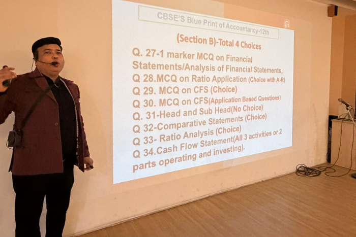 An interactive Accountancy Workshop was organised today for commerce students of grade XI and XII to enhance their conceptual understanding and practical knowledge of the subject. The session was conducted by Dr Vikas Vijay who engaged students through real-life case studies, hands-on problem-solving activities, and insightful discussions on financial literacy and accounting practices.