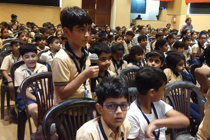 Our school was delighted to host an engaging author talk for classes III and V on 17 September 2025. Ms Sudhamahi Regunathan, an author and a translator, brought alive timeless tales from the Ramayana, weaving stories of courage, wisdom, and problem-solving. She shared anecdotes of Lord Ganesha, highlighting the importance of finding solutions rather than dwelling on problems. The interactive session kept students spellbound as they eagerly asked questions and received thoughtful answers. The joy was doubled when students purchased books signed by the author. It was an enriching experience that left young learners inspired and smiling.