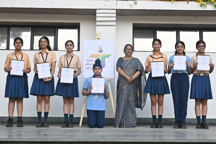 Aanya Aneja (X), Devyanshi Malik (Grade 10), and Saanvi Dey (IX), participated in IGNITE SYMSCI at St. Columba’s School, as part of the Mélange 2025 interschool event.The team showcased outstanding scientific innovation and secured the First Prize, competing against several leading schools.In the knowledge knockout, the team of M.Vasanth and Vihaan Swarankar of class X and Adwitiya Bhaumik of class IX won the 2nd prize in the 9-10 category. Our team of Akshat Patil (IX), Neelanjan Pal (IX), Nandita Agrawal (IX), Harsheen Kaur(IX), Tanisha Dahiya(IX) secured third position in the category of ‘Echoes of Time.’