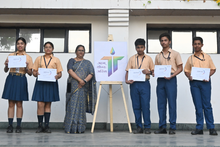 Students brought laurels at the Youth Eco Summit 2026, Asia’s largest youth-led sustainability platform. Dhir Vikram Aggarwal (Class VI) secured 1st position in Essay Writing, Ishika Jain (Class XI) won 3rd position in Monologue, and the team of Nandita, Karan, Kunal Walia, and Shivam Tatpuria (Class IX) excelled in Model Making on E-waste Awareness.