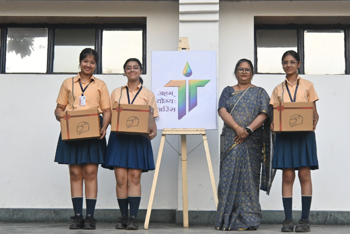 Students actively participated in the ‘My Family. My Safety’ campaign supported by Hero MotoCorp. Through workshops and a drawing competition, they promoted responsible road behaviour. Winners Daniah Bhardwaj, Saanvi Dey, and Aditi Dayal were awarded helmets for their creative expressions on road safety.