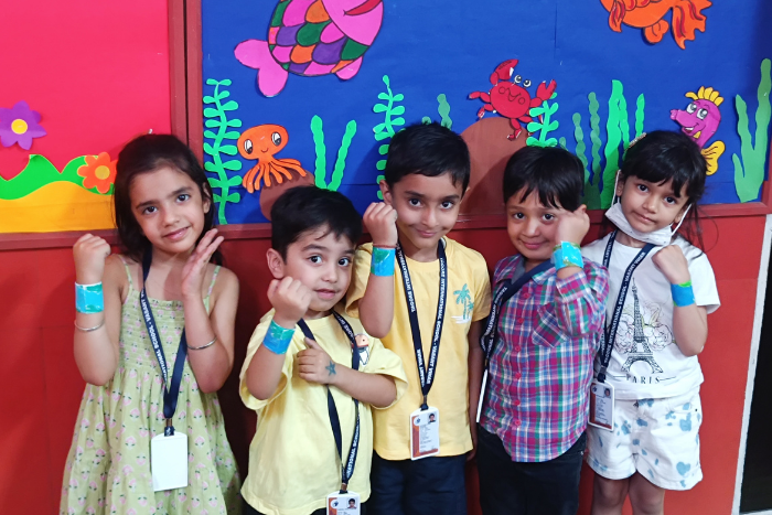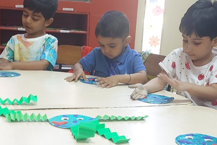 Jump in and out of the circle activity by the students of class KG