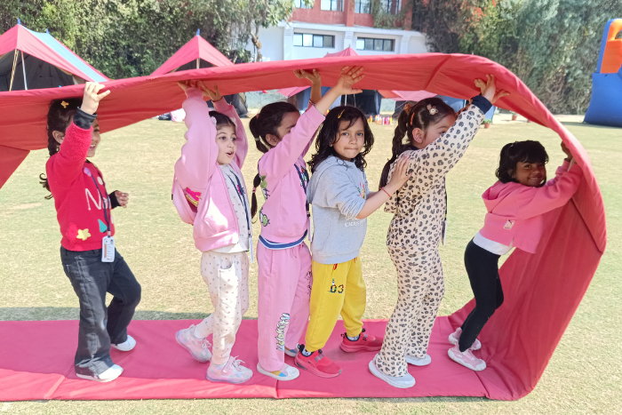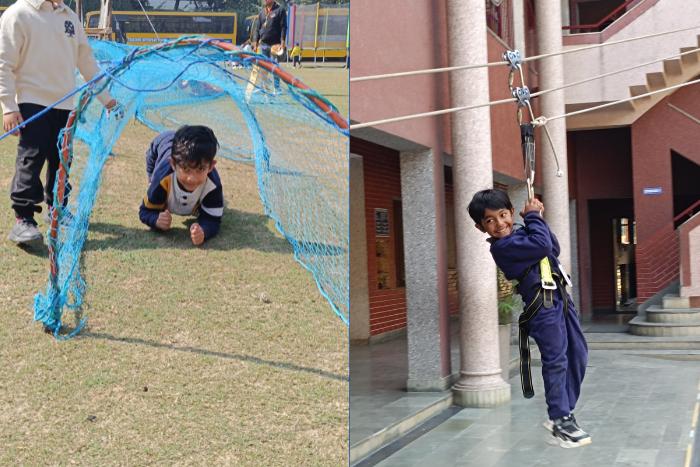 On 14 and 15 February 2026 the Nursery and KG students participated in an overnight camp on the school campus, thoughtfully blending recreation with experiential learning. The program featured various adventure activities such as zip lining, sport climbing, double rope bridge challenge, and tug of war.