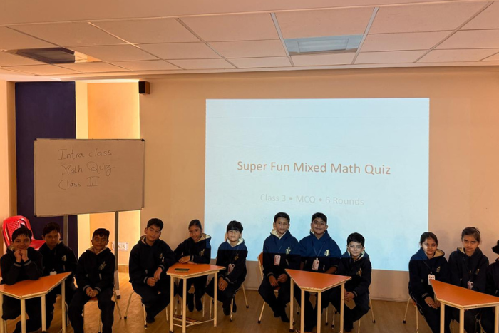 The students of Class III enthusiastically participated in an exciting Intraclass Math Quiz Competition held on 24 November 2025. The event aimed to strengthen numerical skills, build confidence, and encourage quick mental calculations. Children showcased remarkable teamwork, accuracy, and problem-solving abilities through various rounds covering number sense, patterns, logic and everyday math. The competition created a joyful learning atmosphere where students learnt while having fun. The event concluded with appreciation for all participants for their enthusiastic spirit and commendable performance.