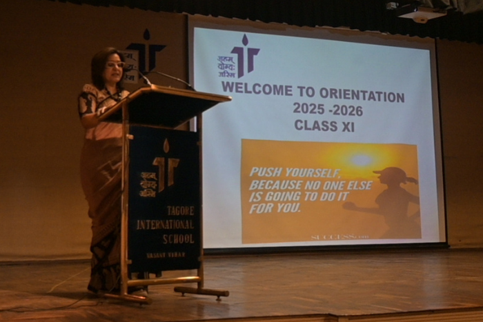 An orientation session for Class XI was conducted on 1 June 2025 to provide students and parents with essential academic guidance for the new session. The Principal, Ms. Jyotika Jakhar, welcomed everyone and introduced the school management and faculty, highlighting the importance of discipline, punctuality, and responsible conduct. Ms. N. Saroj, Dean of Academics, explained the examination structure, promotion policy, academic planner, and the option of choosing a sixth subject. Key reference websites like www.cbse.nic.inwww.cbseacademic.in, and www.tagoreint.com were also shared. The session aimed to build clarity and confidence as students step into the crucial senior secondary stage.