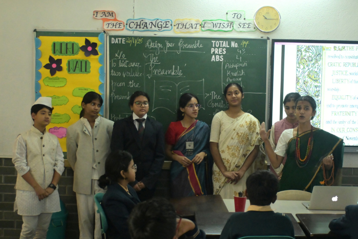 A vibrant wave of constitutional spirit swept through the campus on 26 November 2025 as students from Class VI to Class XI immersed themselves in activities celebrating India’s democratic foundation. Quizzes, role play, podcasts, a Constitution maze game and a documentary screening offered varied, meaningful engagement. The Preamble was read in all classes, sparking thoughtful dialogue on liberty, justice and equality. A Constitution Tree displaying core ideals encouraged learners to reflect on values they connect with deeply. The celebration strengthened constitutional awareness and inspired a renewed commitment to democratic principles.