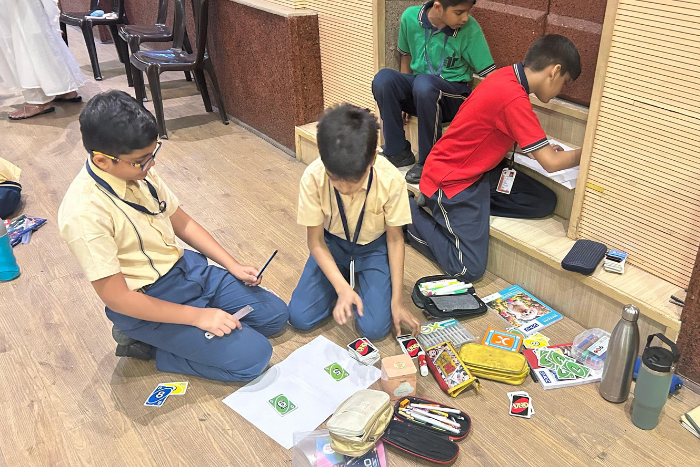 The school organised a PBL activity titled Even–Odd Challenge with UNO Cards for Class VII on 2 April 2026 under the guidance of resource person Abhinav Singhal. Students grouped UNO cards by number and sorted them into odd and even sets to strengthen number classification skills. They explored pairing for fair sharing and recognised simple divisibility patterns through hands-on participation. Learners also designed UNO-based math games for Class II, including Add It Up, Make 10 Memory, Double Trouble, Subtraction Showdown and Colour Pattern Builder. The activity supported prediction skills, logical thinking and understanding of number relationships through collaborative learning.