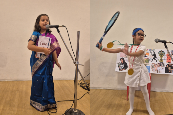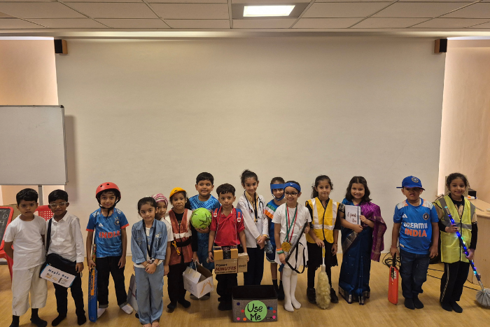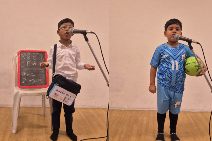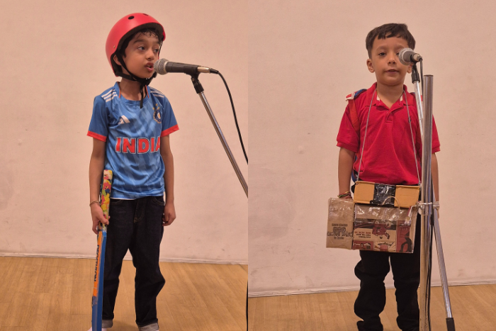 Students of Class I enthusiastically participated in the Intra-class Character Portrayal Competition – ‘Heroes in Action’ held on 29 October 2025. The young performers brought to life two inspiring themes — ‘Everyday Heroes’ and ‘Heroes of the Game.’ Dressed as teachers, electricians, gardeners, and sports icons like Virat Kohli, Sania Mirza, and Mary Kom, the children showcased confidence and creativity. With the help of interesting props such as tool-kits, rackets, footballs, chalk, and blackboards, they depicted their chosen heroes with zeal. The event celebrated courage, dedication, and everyday acts of heroism.