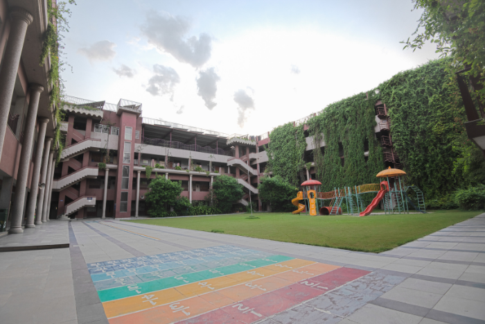 Our learning spaces keep evolving. Over the years, the pavements circling the school atrium have transformed into colourful showcases of knowledge — from the Periodic Table of Elements and geometric shapes to the UN’s structure, phases of the Moon, latitudes and longitudes, a fraction chart, and even a sweeping timeline of Delhi, India, and world history.
