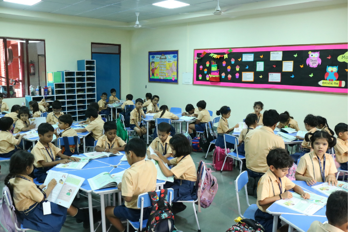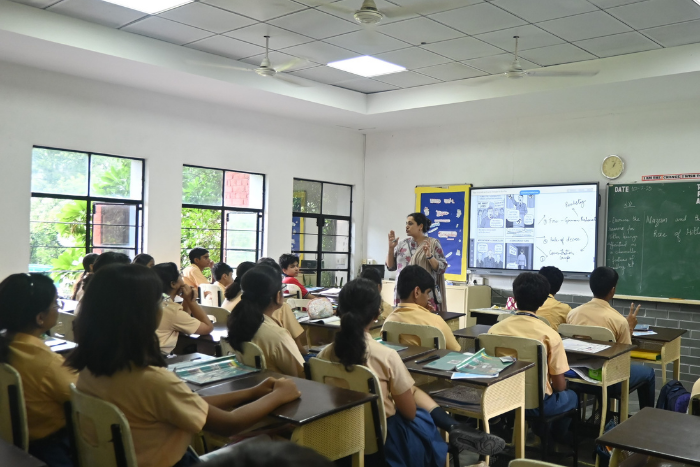 Our classrooms are bright, spacious, and thoughtfully designed to create an engaging learning environment. Equipped with comfortable seating, modern teaching aids, and smart boards, they support interactive and collaborative learning. Well-ventilated and naturally lit, each classroom fosters focus, creativity, and active participation, ensuring that every student feels motivated and involved.