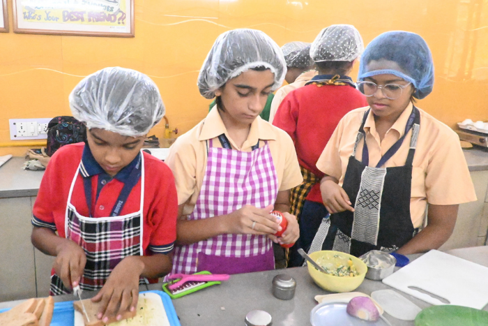 Our Home Science Lab is a well-equipped space where students learn practical life skills through hands-on experiences. Designed with modern cooking stations and work counters, it allows learners to explore nutrition, food preparation, textile work, and home management. The lab fosters creativity, self-reliance, and problem-solving, preparing students for both personal and professional life.