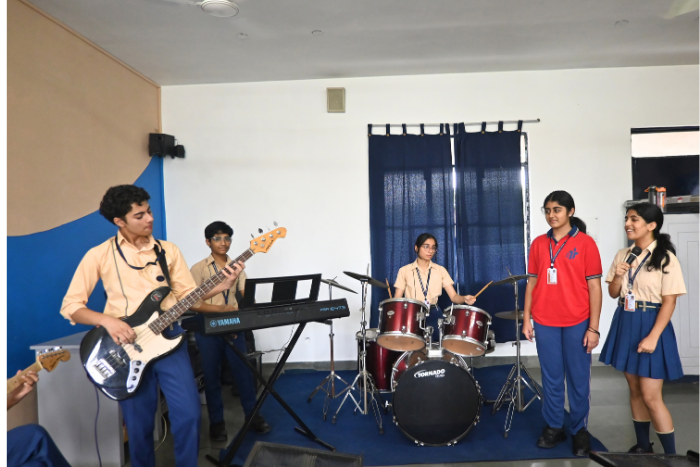 Our Western Music Room opens a gateway to global sounds and contemporary expression. Well-equipped with instruments such as pianos, guitars, violins, drum kits, and digital interfaces, the space enables students to experience genres ranging from classical symphonies to jazz, rock, and pop. With modern acoustics and technology-rich facilities, the room supports individual practice, ensemble performances, and collaborative creativity. Here, students develop not only technical proficiency and musical versatility but also confidence, teamwork, and an enduring love for the universal art of music.