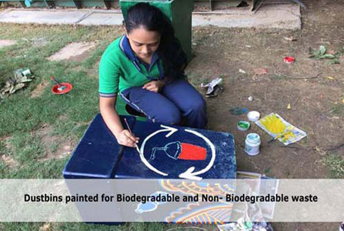 Adding a creative spark, Eco Club students of Class XI transformed the school’s dustbins into vibrant storytellers — painting them with doodles and messages that remind everyone: waste is only waste if it’s in the wrong place.