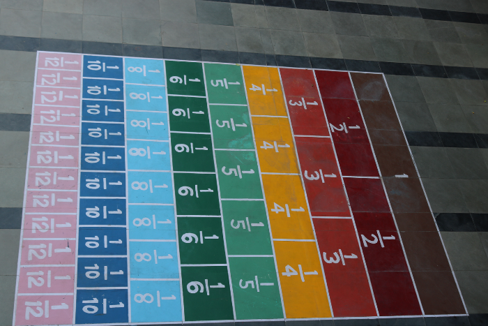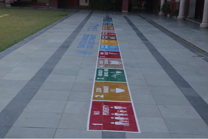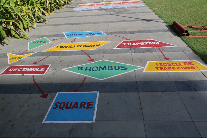 Our learning spaces keep evolving. Over the years, the pavements circling the school atrium have transformed into colourful showcases of knowledge — from the Periodic Table of Elements and geometric shapes to the UN’s structure, phases of the Moon, latitudes and longitudes, a fraction chart, and even a sweeping timeline of Delhi, India, and world history.