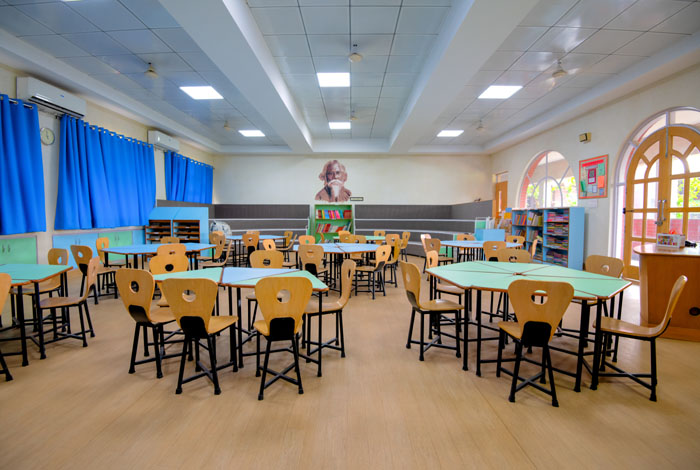 Our classrooms are bright, spacious, and thoughtfully designed to create an engaging learning environment. Equipped with comfortable seating, modern teaching aids, and smart boards, they support interactive and collaborative learning. Well-ventilated and naturally lit, each classroom fosters focus, creativity, and active participation, ensuring that every student feels motivated and involved.