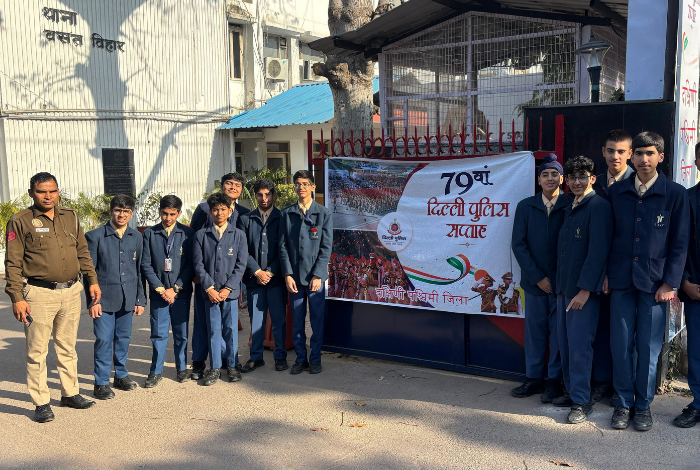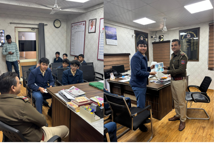 On 16 February 2026, eleven students of Class VIII, accompanied by the Sports teacher, visited the Vasant Vihar Police Station for an insightful educational experience. Students interacted with the Head Constable and the Inspector and were given a guided tour of key areas such as the Inspection Room, VB Room and Reporting Room. They learned about juvenile cases, court procedures, bail processes and how a complaint progresses into a case. The visit concluded with students presenting a Thank You Card to the officers in appreciation of their guidance and service.