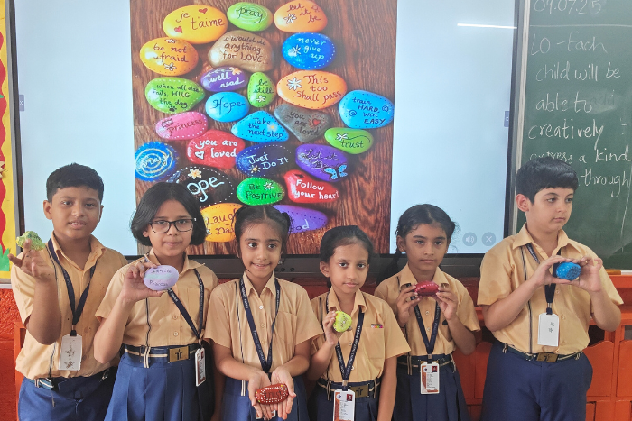 The day began with ‘Pebbles of Positivity’, where children painted kindness stones, expressing empathy through colour and words.
