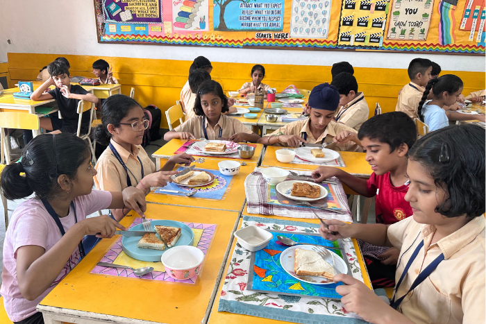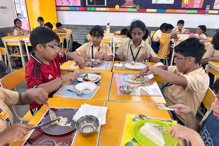 An engaging session on table manners and dining etiquette was conducted for the students of Class V, where they actively participated and learned valuable social skills. They learnt essential skills such as proper use of cutlery, correct grip and cutting techniques, and the ‘fork to mouth’ rule. Through guided practice and hands-on activities, they explored opening and closing plates, using napkins correctly, and waiting politely before eating. Magic words and a fun quiz on manners added to the interactive experience. As part of art integration, the students created personalised dining mats featuring Mandala, Madhubani, and Warli art. The session blending Value Education encouraged students to apply these skills at home, fostering confidence and courtesy in social dining situations.