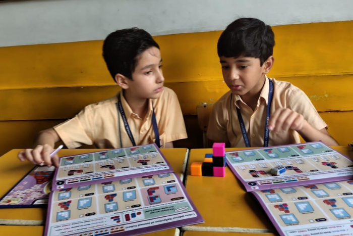 In July, the SHIN programme for Class V continued to build on previous learning with new, stimulating activities. The students engaged in making cubes and explored them from three different perspectives, enhancing their spatial understanding and observation skills. They delved into the concept of coordinates, using hands-on kits to locate and plot points, fostering logical reasoning and critical thinking. All activities encouraged collaboration and creativity, with students actively using their SHIN books and materials. The sessions remained highly interactive, reinforcing core concepts while maintaining excitement and engagement across classes.