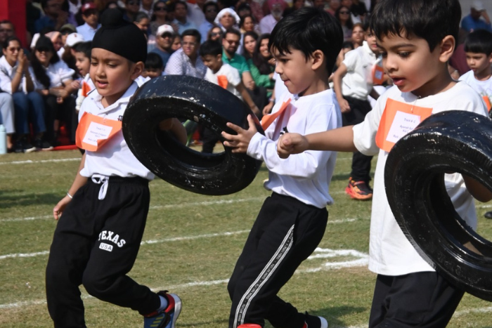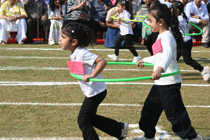The much-awaited Junior Athletic Meet 2025 was celebrated with a vibrant dash of energy, enthusiasm, and sportsmanship on 17 October 2025. The honourable Chief Guest, Mr Jagseer Singh, an Arjuna Awardee, inspired the gathering by emphasizing how sports instill discipline, perseverance, teamwork, and resilience in life. Students of Classes Nursery to V showcased Yoga, Zumba, and Taekwondo with grace and confidence, followed by a range of unique and energetic races. The highlights were the grandparents’ and teachers’ races, which filled the field with joy, laughter, and the true spirit of unity through sports.