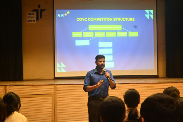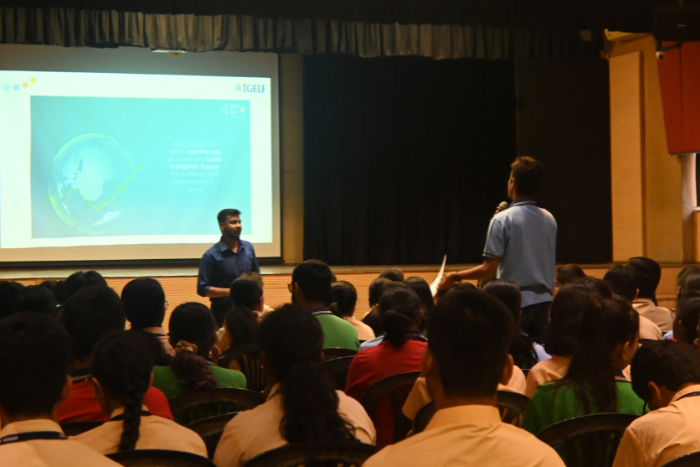 Students of Classes XI and XII were introduced to the tGELF HARMONY competitions by Mr. Deepanshu and Ms. Madhulika from tGELF/JA India on 16 April 2025. They were familiarized with the Company of the Year programme in particular, highlighting what it takes to build and run a student company, what benefits the competition brings and the structure of the same. The winning members of the school’s own company, CigCreate, shared their experience at COYC, and encouraged students to participate. They were also given details regarding the Youth Harmony and Reel to Real categories of the competition.