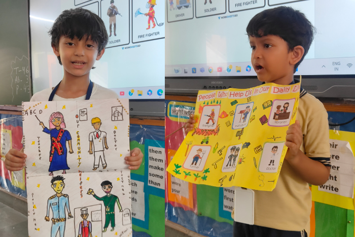 Bagless Days are eagerly anticipated by students, with excitement starting as early as Tuesday afternoon. This month was no different, bringing a blend of fun and learning across subjects. Students of Class II explored seasonal clothing and transformed into budding designers. Their creativity and curiosity shone through as they made pinwheels to learn about wind. Math turned playful with squish painting to discover doubles. Socio-emotional growth was nurtured as they shared about their favourite family members and crafted thank-you cards for those who support them, making the experience enriching and joyful.