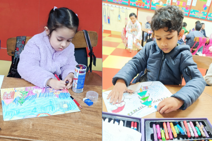 The KG Intra-Class freehand drawing competition was held on Tuesday, 03 February 2026, with the theme ‘Christmas’. The kindergarteners participated enthusiastically, creating vibrant Christmas scenes in their individual styles. They displayed a good sense of proportion and coloured neatly within the outlines. Their bright, colourful, and imaginative artworks were truly a delight to behold.