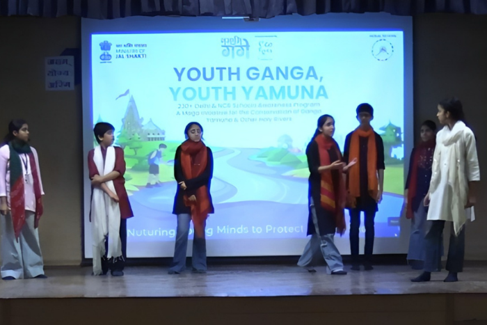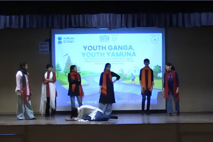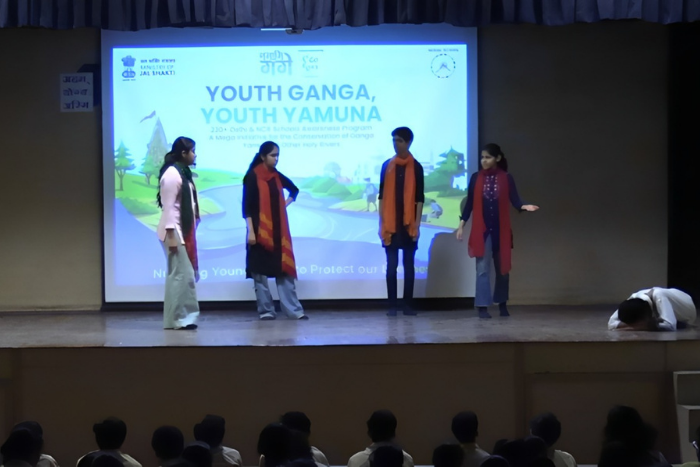 The National Mission for Clean Ganga (NMCG), under the Ministry of Jal Shakti, sanctioned an awareness initiative aimed at sensitizing school students towards river conservation and biodiversity. As part of this project, students of Class VIII presented a stage play designed to establish an emotional, cultural, and environmental connection with the rivers Ganga River and Yamuna River.