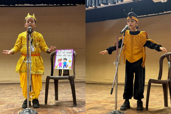 कक्षा तीसरी के छात्रों के बीच 23 सितंबर 2025, को विद्यालय में अंतरकक्षा ‘बुनो कहानी’ प्रतियोगिता का सफल आयोजन किया गया। इस प्रतियोगिता का उद्देश्य विद्यार्थियों में आत्मविश्वास, तार्किक चिंतन, सृजनात्मकता और भाषा–ज्ञान को विकसित करने के साथ-साथ उन्हें यह भी समझाना था कि जीवन में सत्य, दया, अहिंसा, सम्मान और सहयोग जैसे मूल्य ही हमें एक अच्छा व्यक्तित्व प्रदान करते हैं। विद्याथियों ने कहीं रंगमंच सामग्री से, तो कहीं अपने अभिनय से कहानी को जी लिया और सबका ध्यान अपनी ओर आकर्षित किया। यह कार्यक्रम छात्रों के व्यक्तित्व और नैतिक मूल्यों को निखारने का एक सुनहरा अवसर भी था।