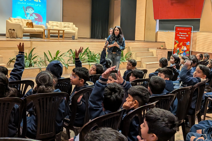 An engaging Author Talk session by Ms. Devika Anand Gupta, author of the newly launched children’s book ‘Captain Scowl’ was held at Tagore International School, Vasant Vihar for students of Class II and III on 21 November 2025. Ms. Gupta captivated the young audience with an interactive storytelling session, bringing the character of Captain Scowl to life through expressive narration and lively discussion. She spoke about the inspiration behind her book, the creative writing process, and the importance of expressing emotions through stories. The students enthusiastically participated by asking questions, sharing their thoughts about the characters, and reflecting on the message of the story. The session encouraged imagination, empathy, and a love for reading. The event concluded with a warm vote of thanks to Ms. Gupta for inspiring children to explore the joy of books and storytelling.
