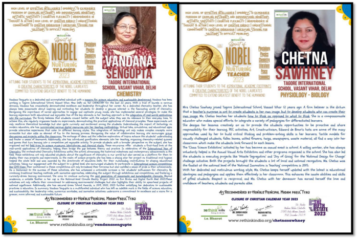 Honoring Excellence: RETHINK INDIA Awards 'Nobel Nurturing Teacher Award 2023' to Six Outstanding Educators