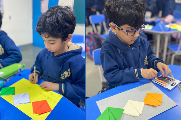 Class I students expressed patriotic feelings through the creation of Tricolour origami tulips, while Class II students conveyed national values through slogan writing inspired by India’s democratic ideals. Students of Classes VI–VIII showcased awareness and creativity through comic strips, posters, and quizzes. Such celebrations enabled students to develop civic awareness, creativity, teamwork, and a deep sense of respect for the nation.