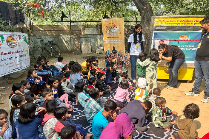 On the occasion of Children’s Day, our school initiative, Sehpaathi organised a meaningful Donation Drive and Community Interaction Session for the less privileged children living in Coolie Camp, Munirka. Volunteers interacted warmly with the children and helped them explore basic computer skills, allowing many to type their names for the first time. Stationery kits were then distributed, bringing evident happiness. Later, the volunteers accompanied the children to a nearby park for an engaging drawing activity conducted with Hamari Pehchan NGO. The day concluded with a cheerful cake-cutting moment, creating memorable experiences and reinforcing the spirit of care and learning.